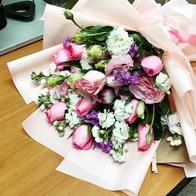 분홍장미계절꽃다발