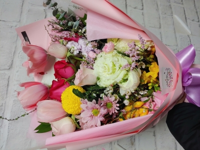 분홍장미계절꽃다발