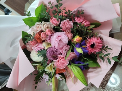 분홍장미계절꽃다발