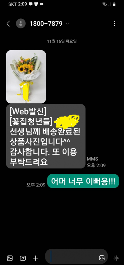 배달도 빠르고 꽃도 굉장히 이쁘게 와서 만족했습니다~!...