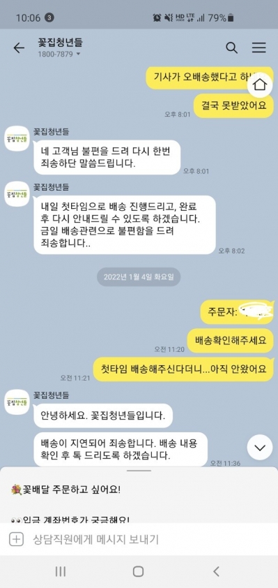 제 날짜에 배송되지 않습니다.